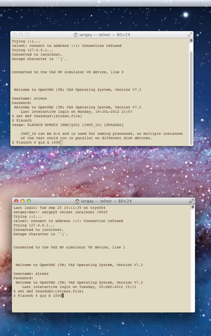 Four more processes will perform read/write test to VXA$DUB0.