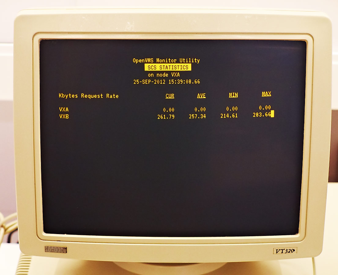 SCS (System Communication Services) statitics. The test we are running generates high rate of very small data transfer requests. Therefore data rate measured in KB/s is not high in this test.