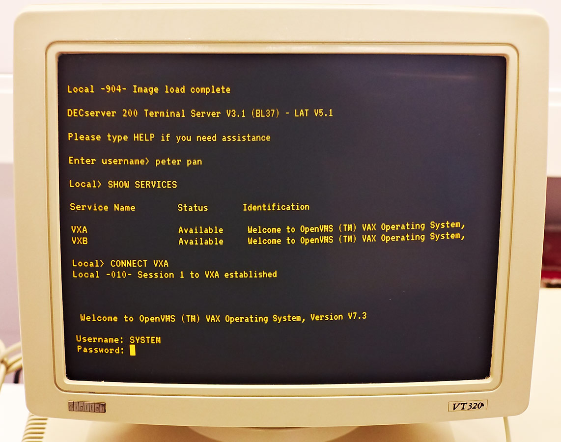 Let’s connect to LAT service VXA and log in to VMS on node VXA.