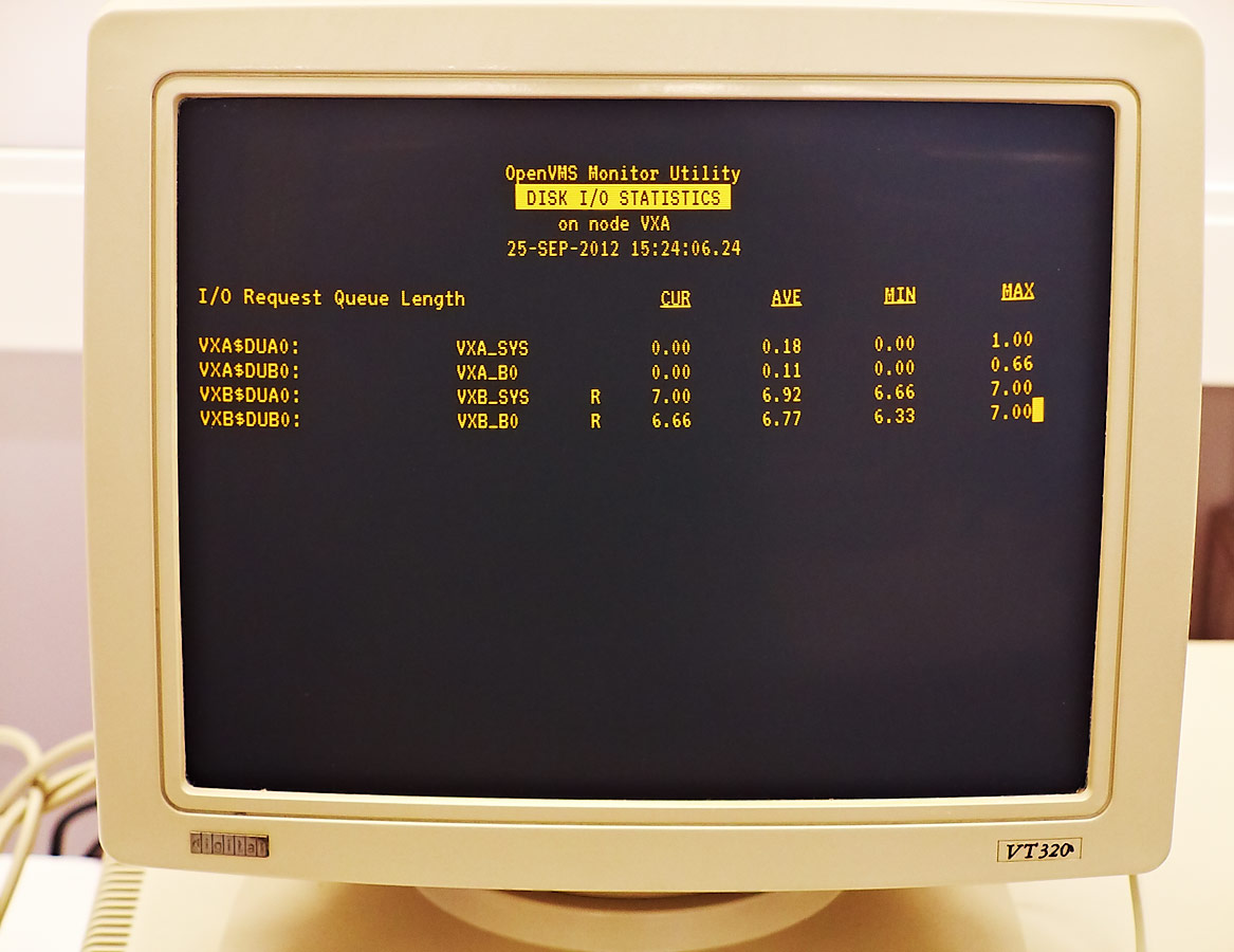 Queue length for each of remote disks is about 7 pending requests. This roughly corresponds to 8 processes per node that perform remote disk IO.